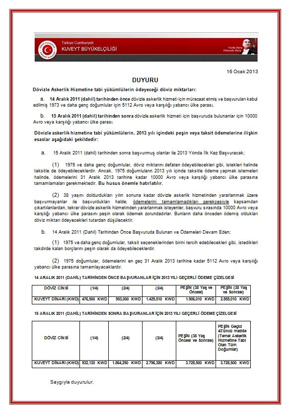 Dövizle askerlik duyurusu