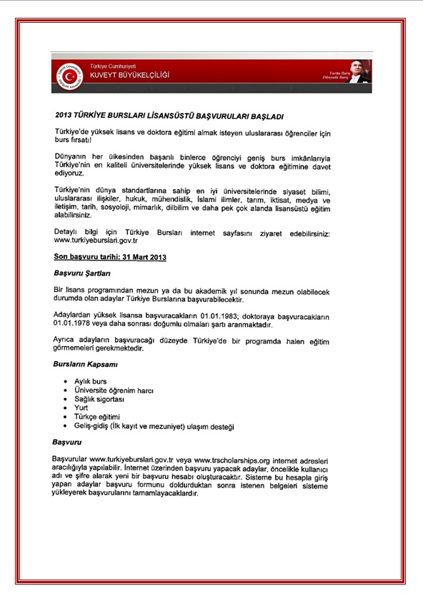 2013 Türkiye Bursları Lisansüstü Başvuruları Başladı