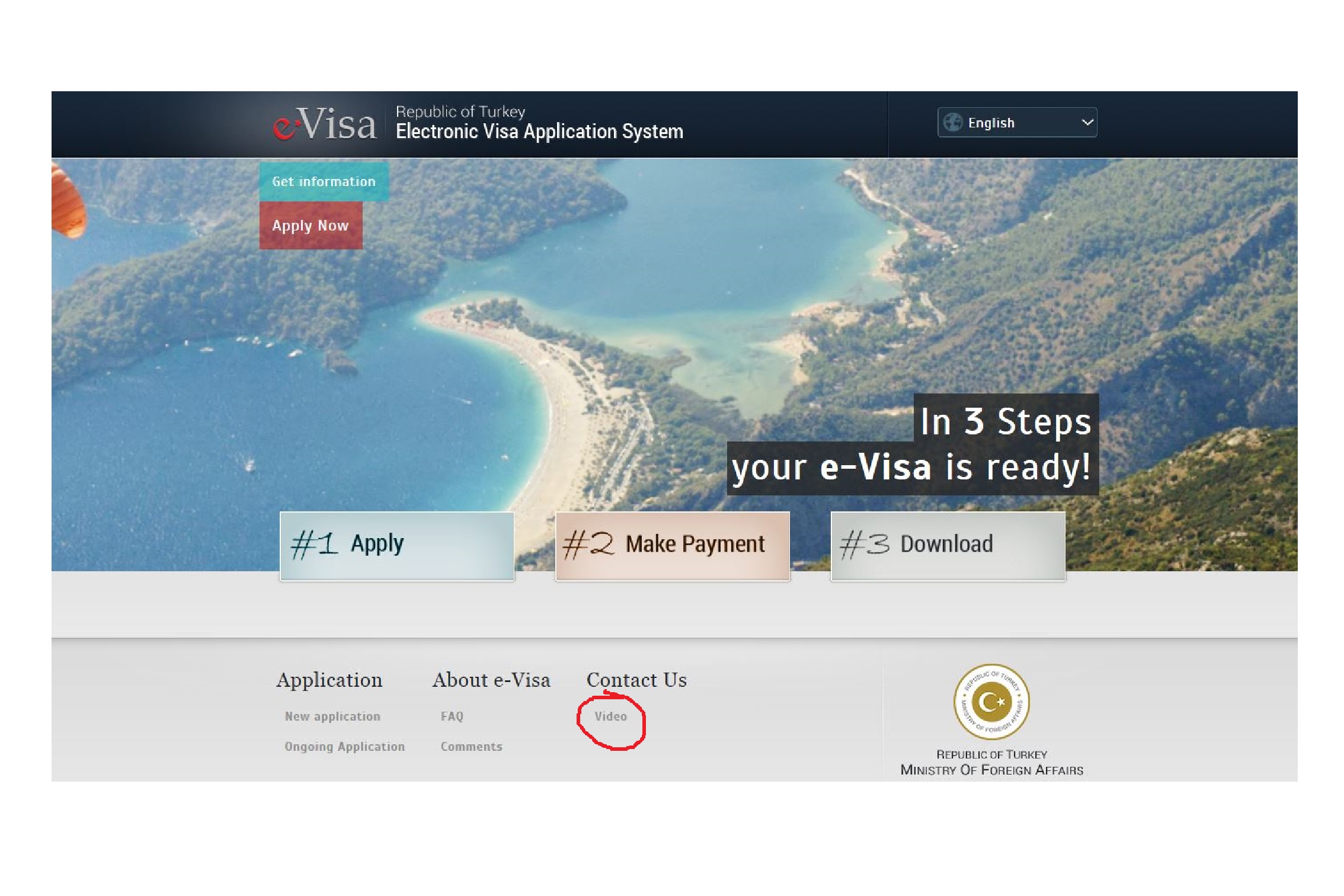 You can apply via www.evisa.gov.trfor thee-Visa. Kindly find the "Video" linkbelow the Homepage of the said website and watch the video,to see how simpleto get e-Visa.