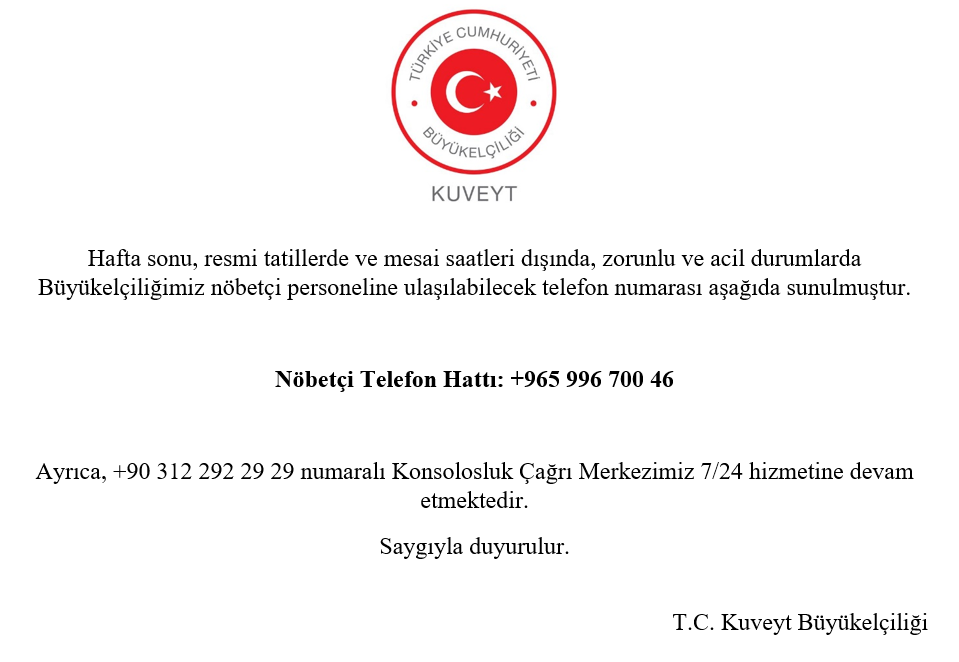 Nöbetçi Telefon Hattı: +965 996 700 46