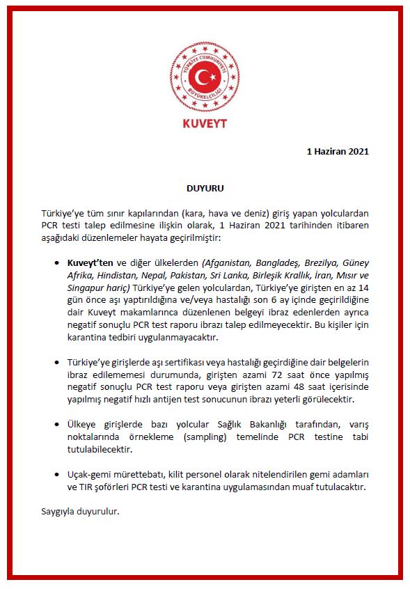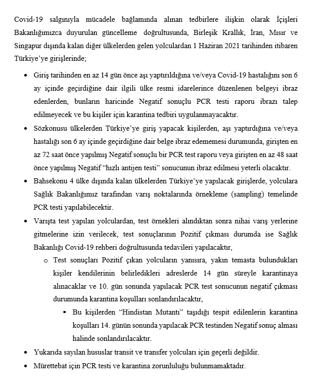 COVID-19 Salgınıyla Mücadele Bağlamında Türkiye'ye Girişlerle İlgili Alınan Tedbirlere İlişkin Güncel Duyuru