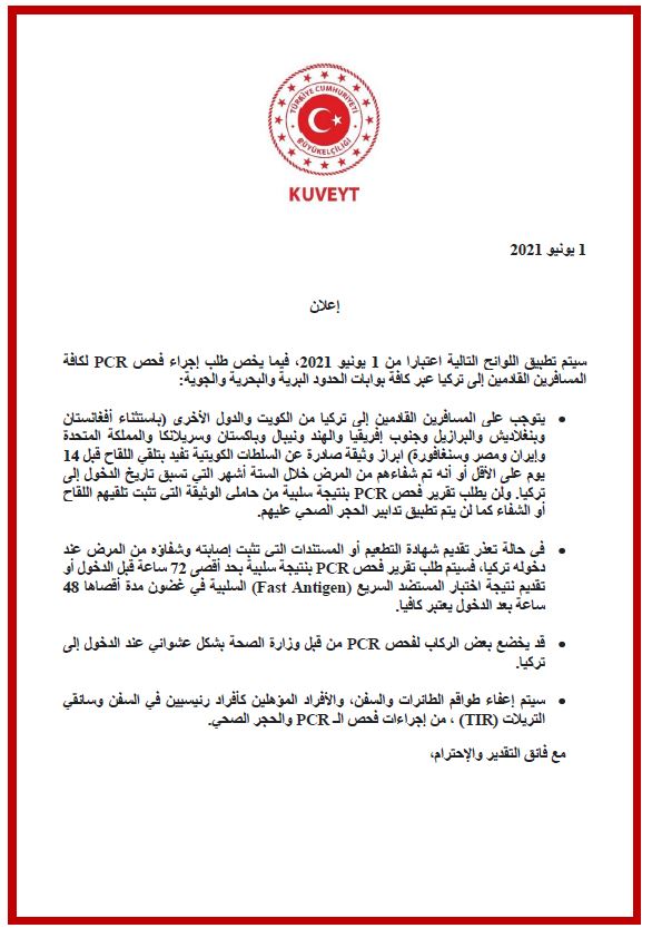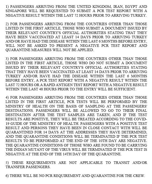 UPDATED NOTAM REGARDING FLIGHTS TO TURKEY