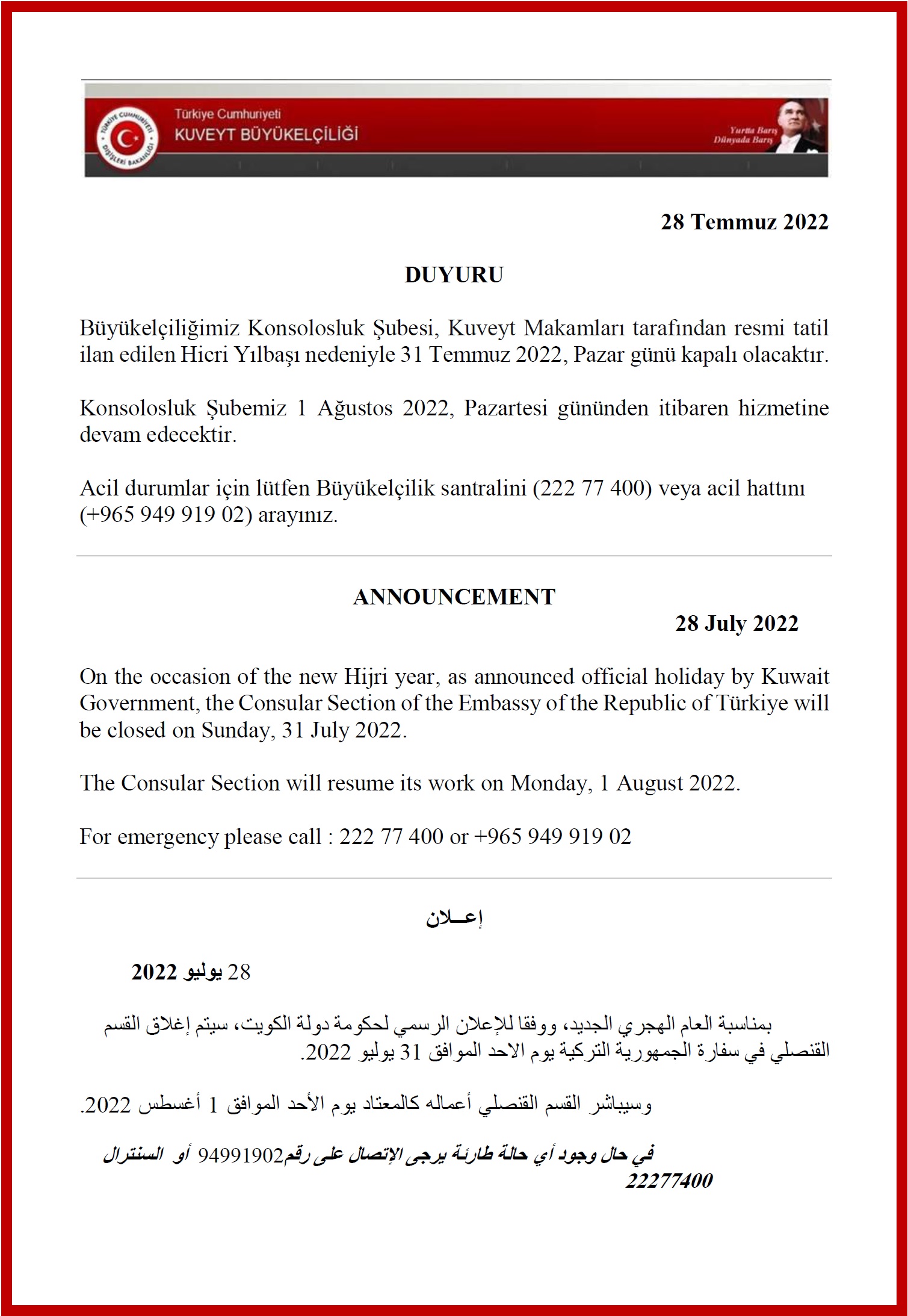 | 25.02.2026 | 26.02.2026 | Kuveyt Milli ve Kurtuluş günleri |