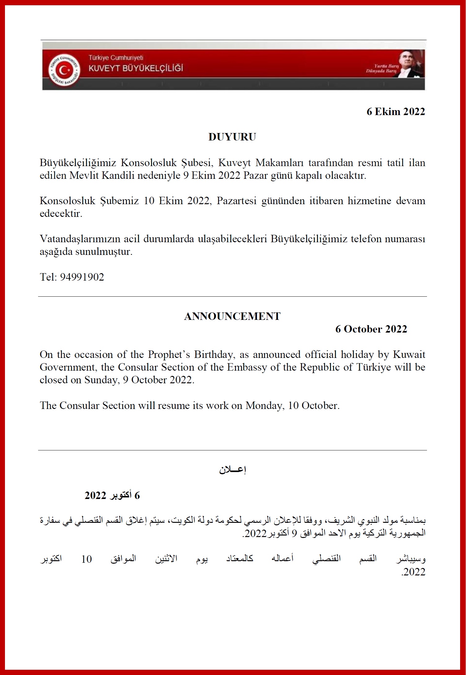 | 25.02.2026 | 26.02.2026 | Kuveyt Milli ve Kurtuluş günleri |