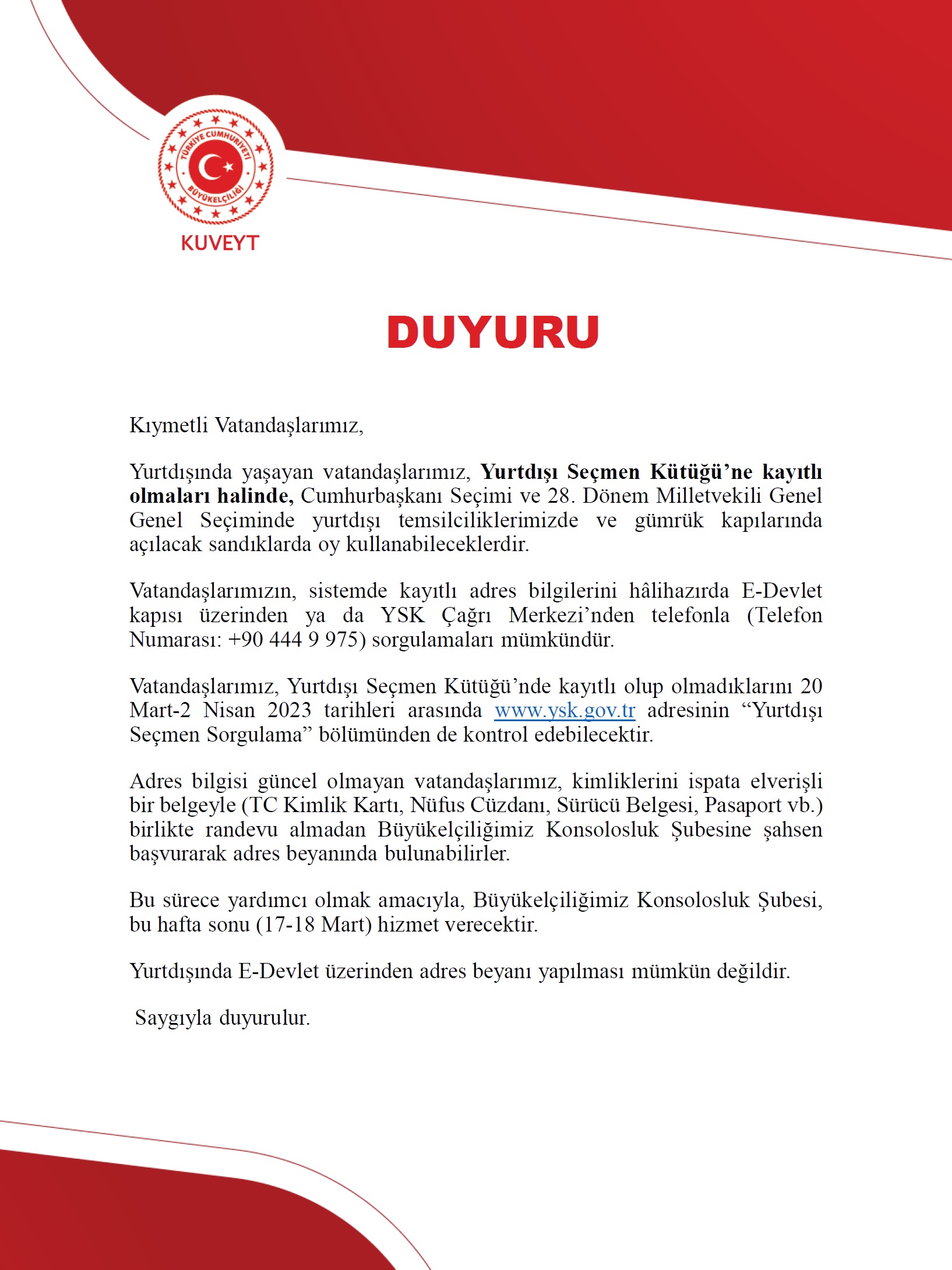 Adres Beyanı Duyurusu