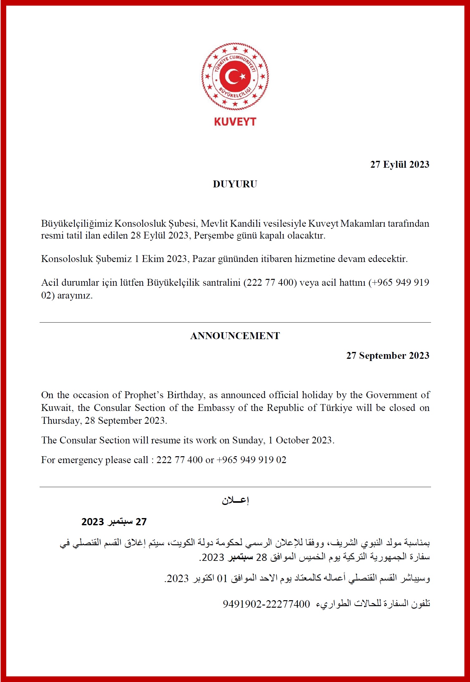 | 25.02.2026 | 26.02.2026 | Kuveyt Milli ve Kurtuluş günleri |