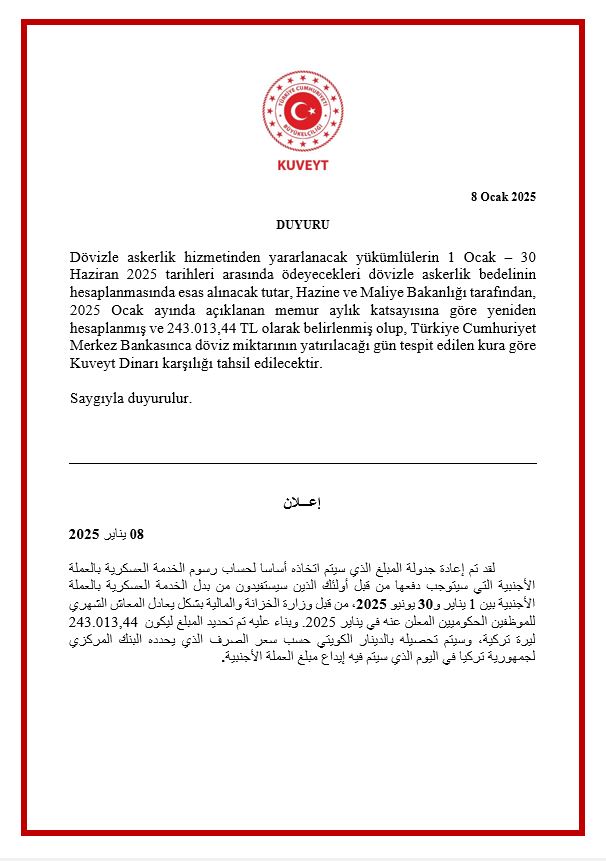 Dövizle Askerlik Duyurusu 8 Ocak 2025