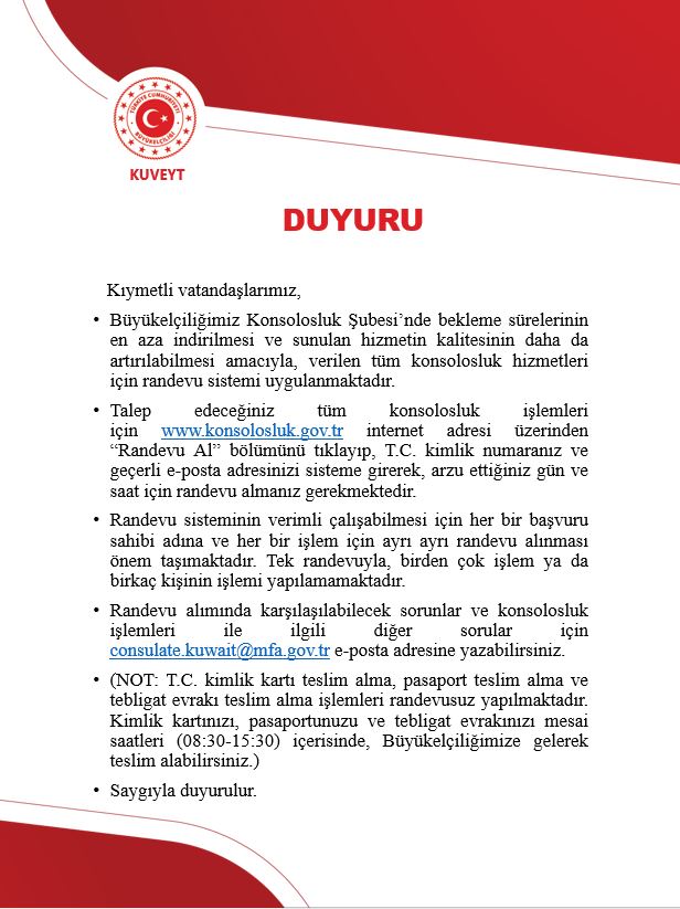 Konsolosluk İşlemleri 08:30 - 13:00 / 14:00-15:30
