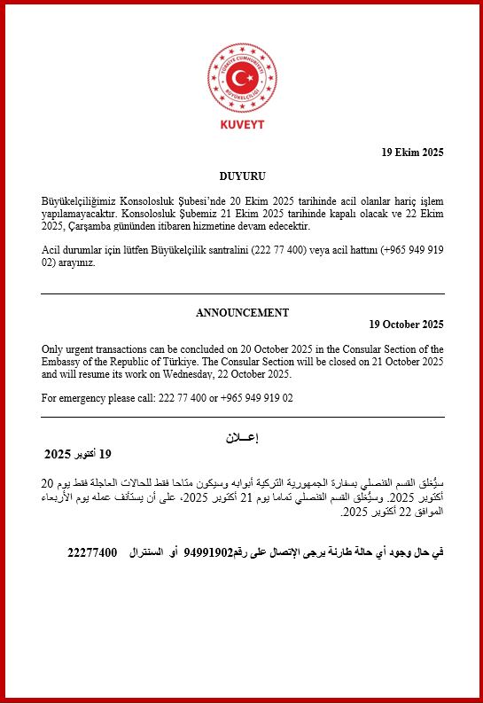 | 25.02.2025 | 28.02.2025 | Kuveyt Milli ve Kurtuluş günleri |