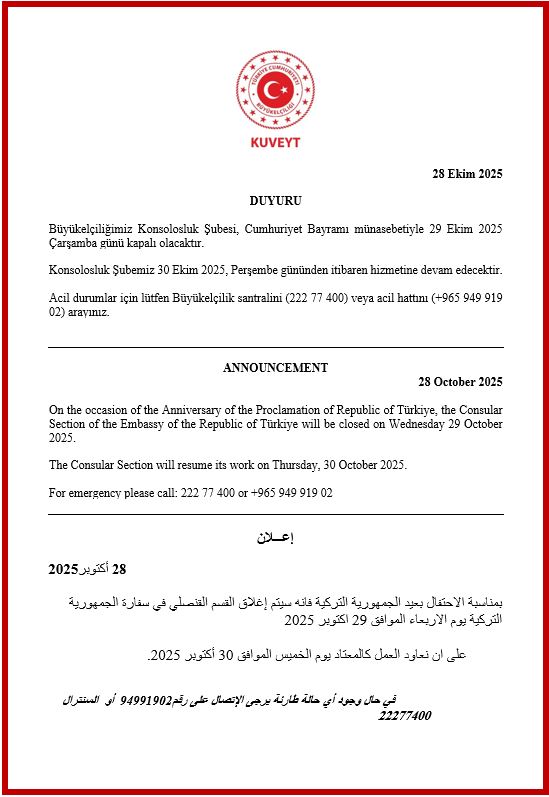 | 25.02.2025 | 28.02.2025 | Kuveyt Milli ve Kurtuluş günleri |
