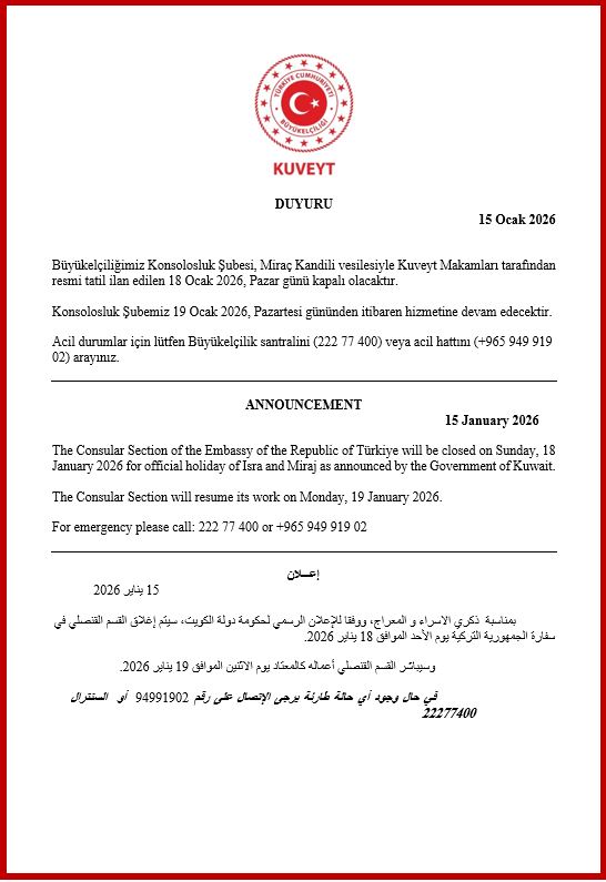 | 25.02.2026 | 26.02.2026 | Kuveyt Milli ve Kurtuluş günleri |