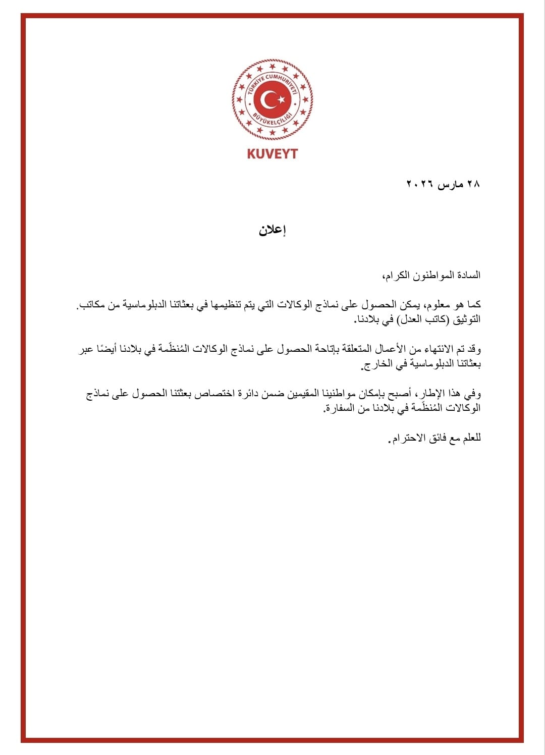 Vekaletnamelere İlişkin Duyuru 28.03.2026
